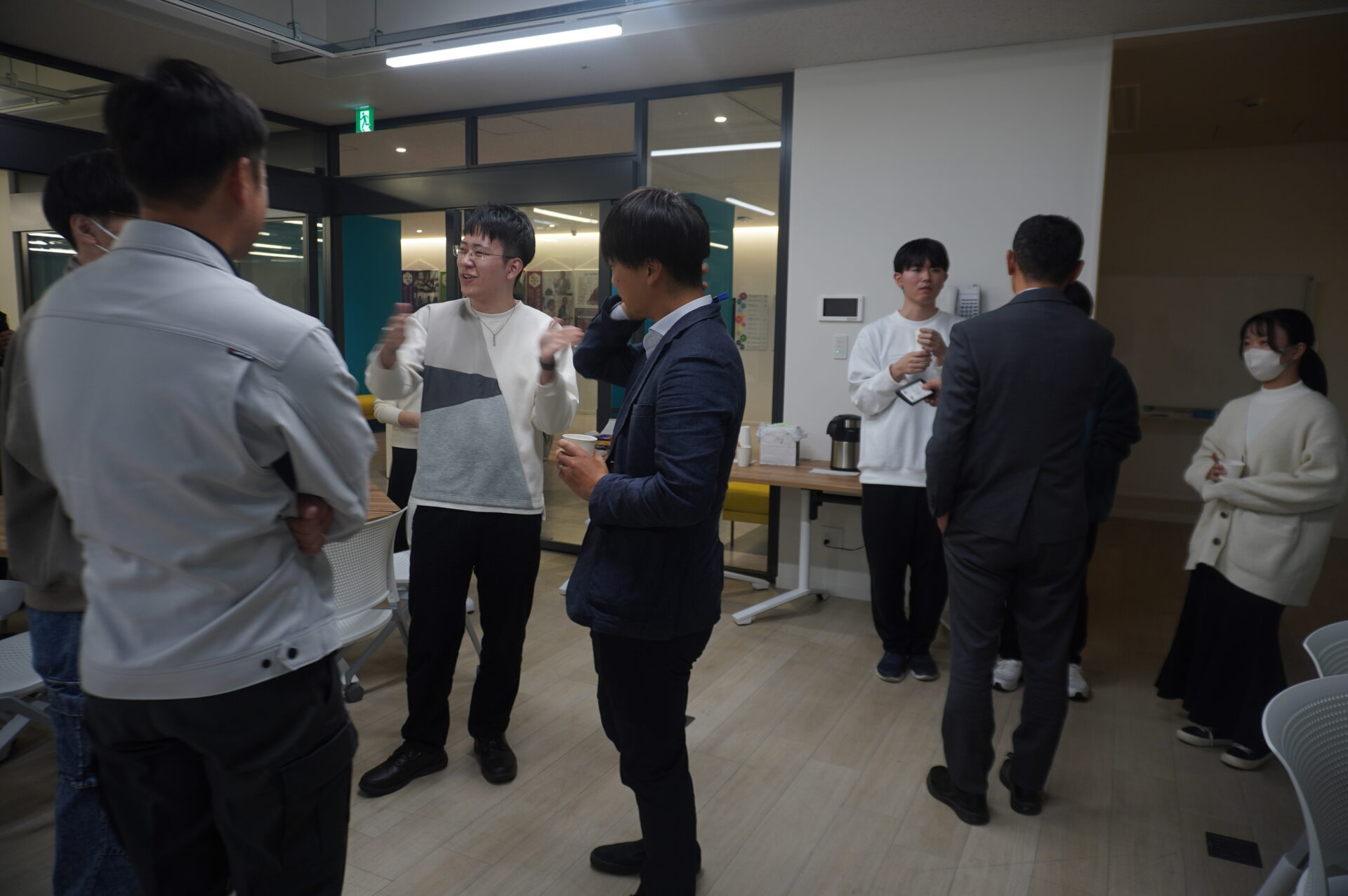 体験終了後の企業と学生との交流では、各々が気になることを話したり、体験内容だけではなく、就活や学生生活などについても、突っ込んだ質問等が出ていました。