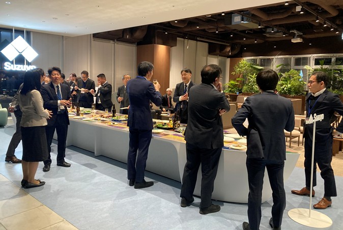 その後は和やかな雰囲気の中で懇親交流会を実施しました。受講生一人ひとりが今年の抱負や近況を語り、今後への思いを共有しました。第1期生・第2期生の出会いも生まれ、「懇親会で再び集まりたい」「互いの企業見学を実施したい」「ゴルフを通じて交流を深めたい」といった声も上がり、講座修了後も続くネットワークの広がりを感じられる時間となりました。