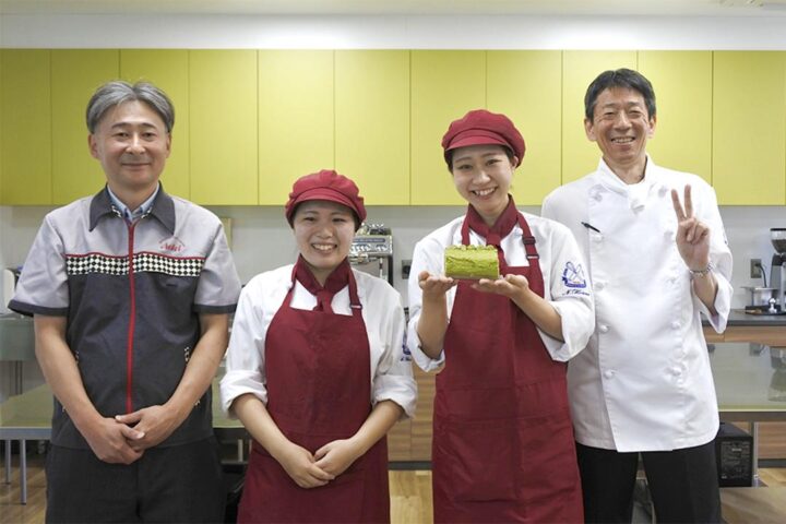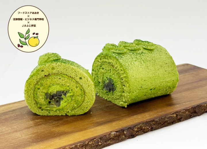 この度、製菓・製パン科2年生 紺野 虹七さんが原案を考案した「ニューサマー香る!めっちゃまっちゃロール」が、フードストアあおき様との共同開発、そしてJAふじ伊豆様のご協力により、商品化され、発売されることになりました。