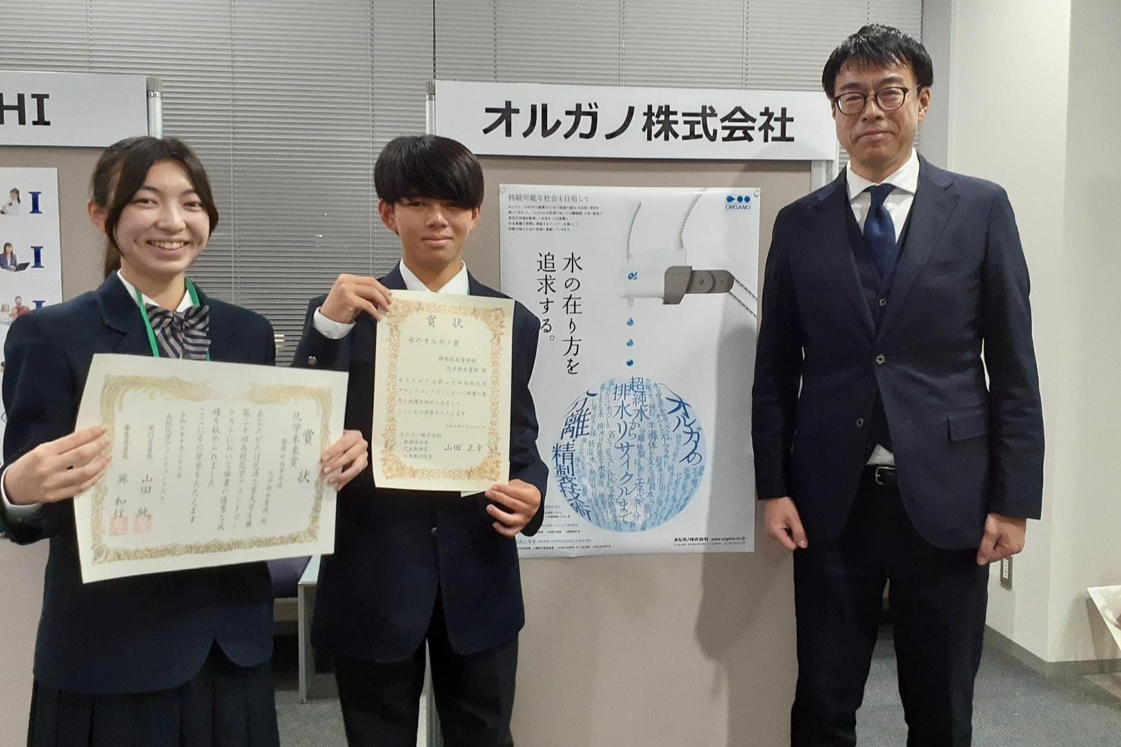 その独創性と研究水準が評価され、「化学未来賞(全国2位)」と「水のオルガノ賞(企業賞)」をダブル受賞となりました!