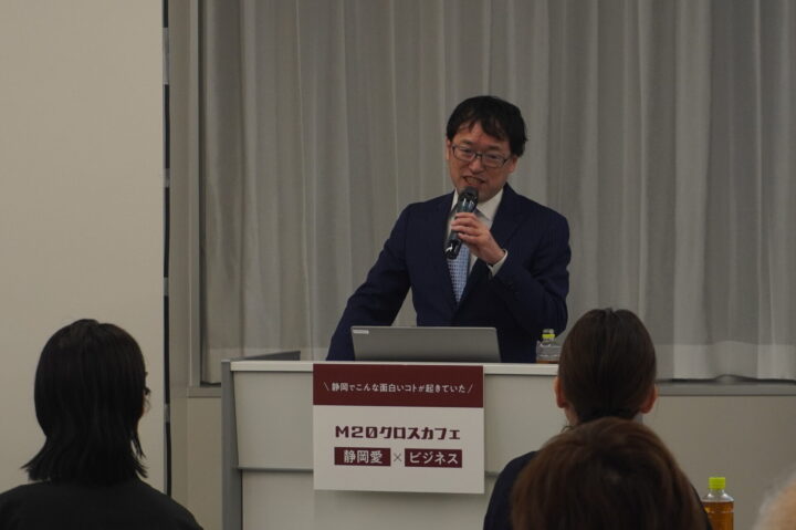 「静岡愛×ビジネス~静岡でこんな面白いコトが起きていた!~」をテーマに、静岡で活躍する人の話を聴きながら、参加者同士も交流を深めることのできる「M20クロスカフェ」。